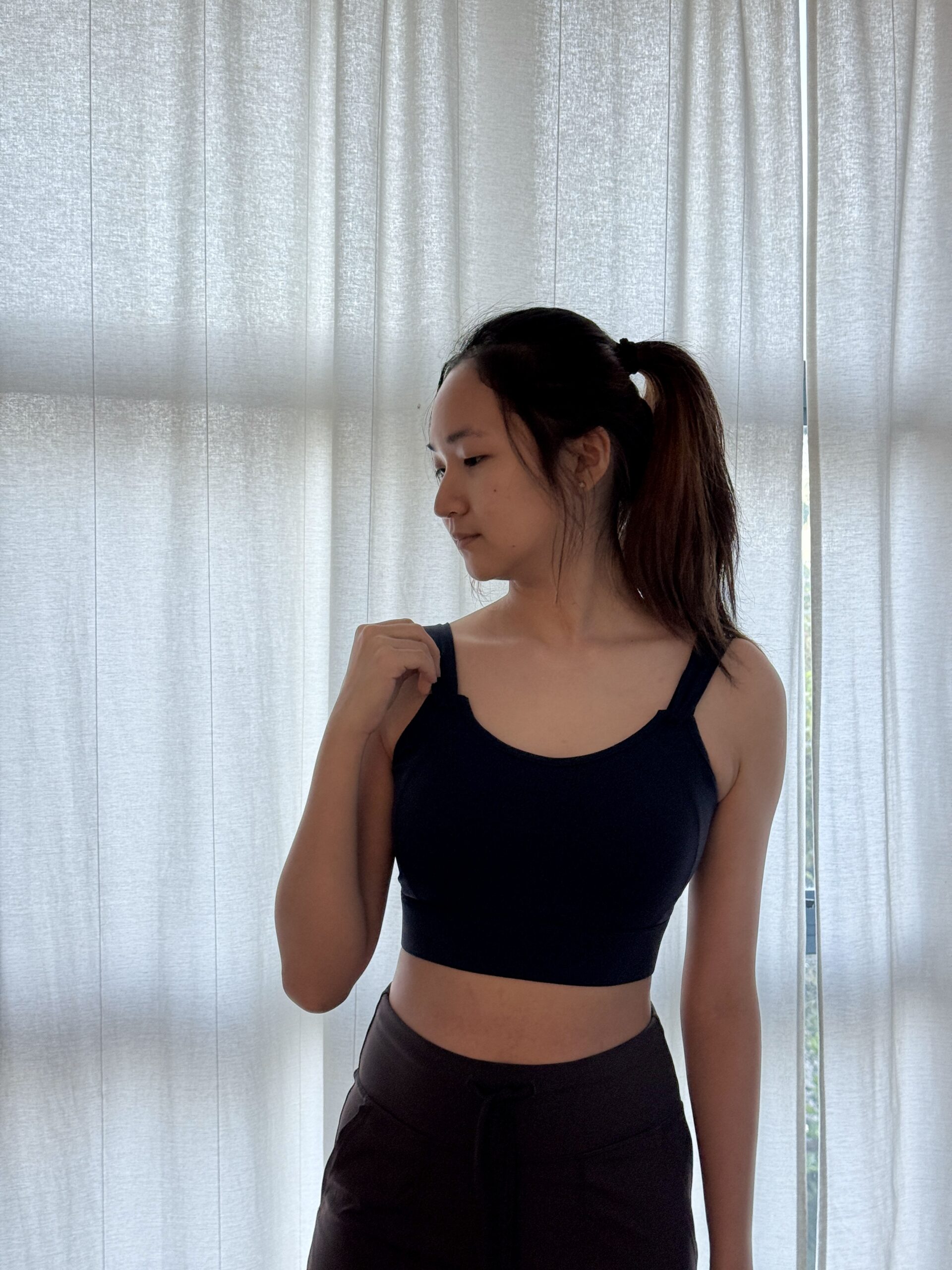This sports bra is all about shape and support. It features special structured seams on the front that help create a flattering silhouette while keeping everything in placefully. The adjustable straps, allowing you to fine-tune your fit.